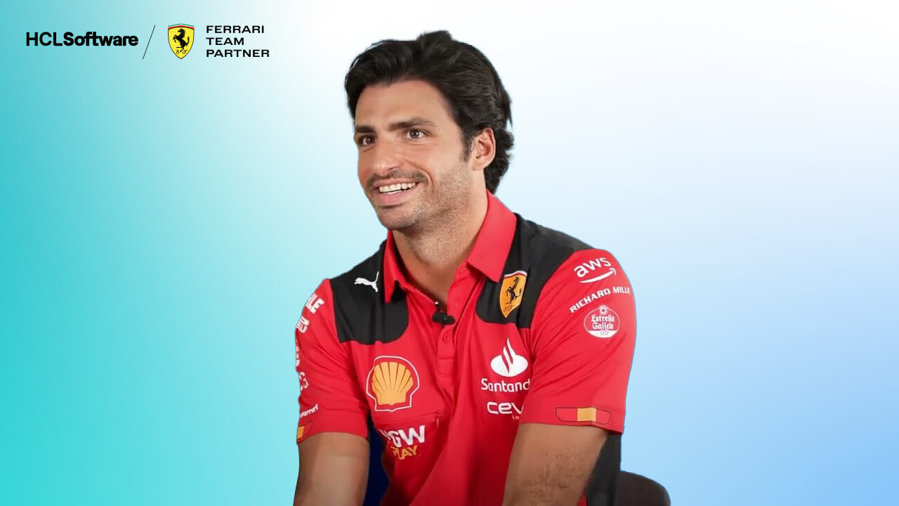 法拉利车队的明星赛车手 Carlos Sainz 快速回答了一系列关于他最喜欢的话题的提问——以及他对 HCLSoftware 的了解程度。
